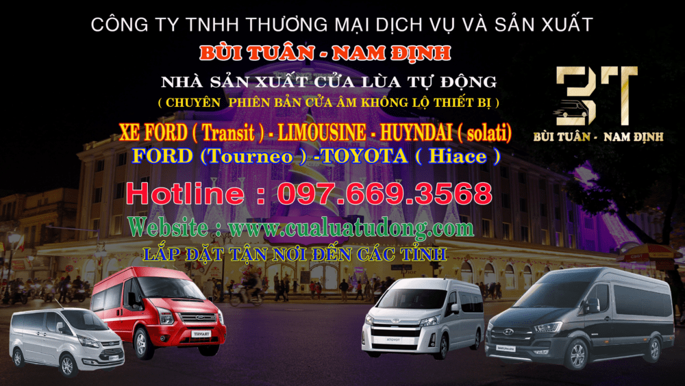 Sản phẩm cửa tự động của Bùi Tuân – Nam Định là đơn vị chuyên về cửa lùa tự động cho các dòng xe ( FORD transit, HUYNDAI solati, TOYOTA hiace, FORD turneo, các xe độ LIMOUSINE )